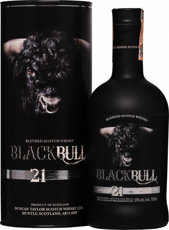 Black Bull 21 Years Old Duncan Taylor Blended Scotch Whiskey zraje 21 let v sudech ex-sherry a ex-bourbon. |