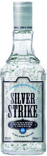Skořicový likér značky Bols se stříbrnými lístečky uvnitř lahve. |