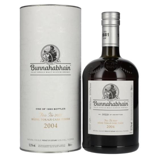 Bunnahabhain MÒINE TOKAJI CASK FINISH je vynikající, sladká a kouřová whisky, vytvořená k oslavě Dne Bunnahabhain na Fèis Ìle 2022. Tato speciální lahvovaná whisky zrála něco málo přes rok v maďarských sudech po bílém víně Tokaji, což jí dodává jedinečný charakter. Tato whisky byla destilována 2. 2. 2004 a lahvována 24. 1. 2022.
