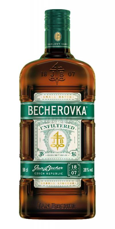 Becherovka Unfiltered 0,5l 38% - Nefiltrovaná Becherovka je prémiový bylinný likér, který je součástí ikonické rodiny Becherovky. Je to jedinečný výrobek bez chemických konzervačních látek, barviv, nebo jiných umělých látek a emulgátorů. Vyrobena z čisté karlovarské vody, vysoce kvalitního lihu a směsi bylin a koření. Má přirozenou a bohatou chuť, díky které je perfektní jak samotná, tak i ve vašem oblíbeném drinku.