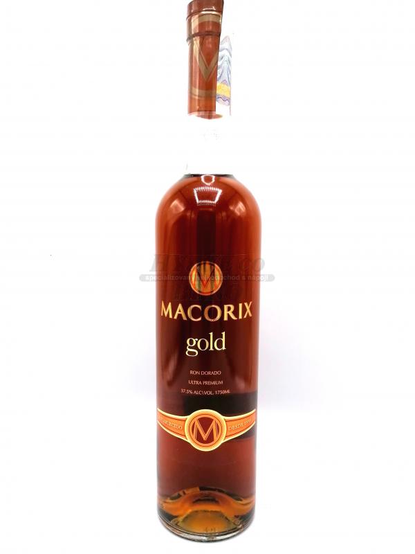 Macorix Gold1,75l 37,5% - je dobře vyvážený produkt obsahující až šestileté rumy. Macorix Gold je atraktivní světle zlaté barvy, vůně lehkého dřeva a hladká chuť vanilky.