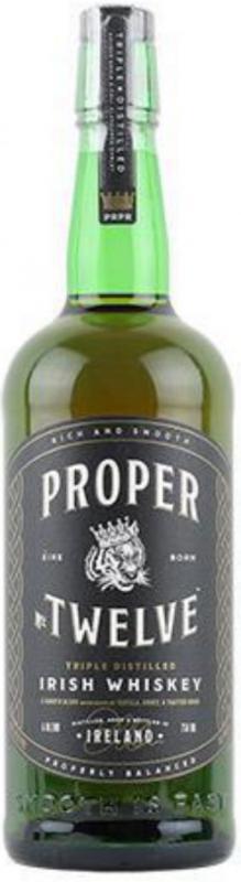 Proper No. Twelve Irish Whiskey je dokonale vyvážený blend sladových a obilných irských whiskey. Vyrábí se z irské pramenité vody a nejlepšího zrna. Po trojí destilaci v měděných kotlích je absolutně čistá, nekonečně jemná, s tóny vanilky a medovou sladkostí v doprovodu opáleného dubového dřeva.