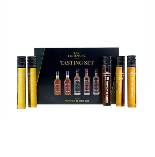 Speciální edice degustačních miniatur značky Centenario. V setu najdete tyto varianty: 9 Years Old Conmemorativo, 12 Yeras Old Gran Legado, 18 Years Old Reserva de la Familia, 20 Years Old Fundación a 25 Years Old Gran Reserva. Centenario je kostarická špička rumů světové kvality s tradicí více než 50 let. Rumům dodává specifickou chuť a charakter klasické staření nebo staření systémem solera v sudech po whisky.