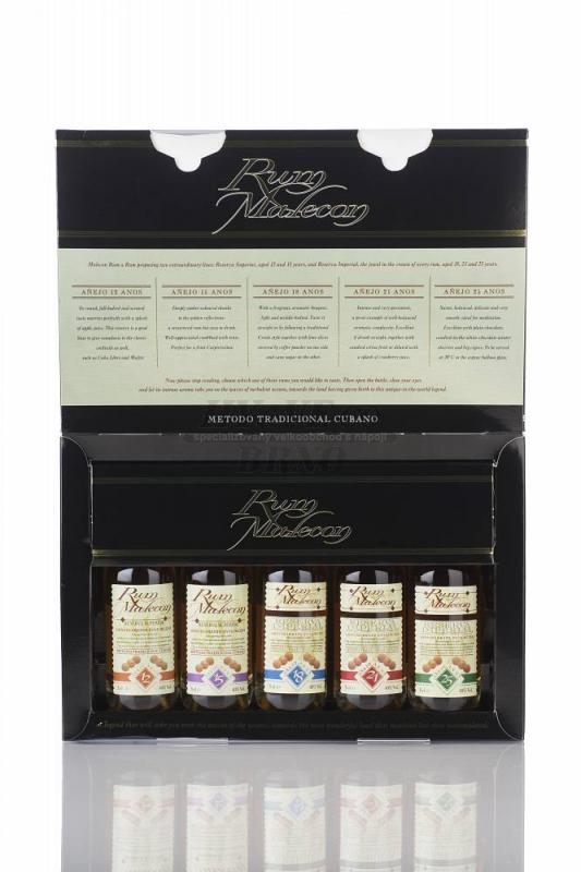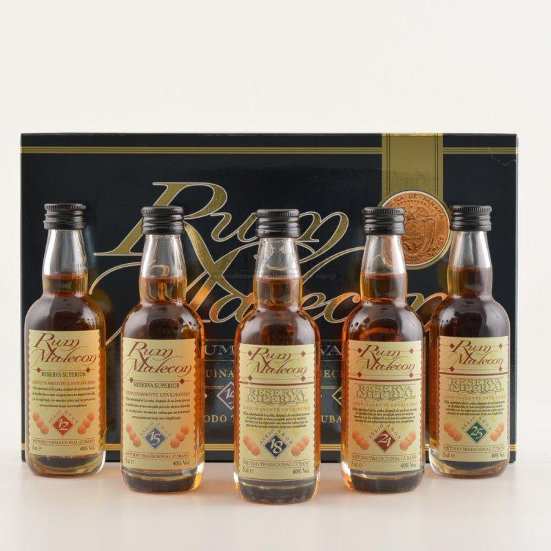 Dárková kolekce obsahuje rum Malecon 12YO, 15YO, 18YO, 21YO, 25YO v miniaturním provedení. |