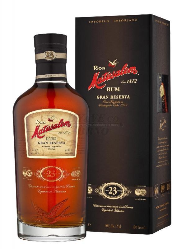 Matusalem 23 yo Gran Reserva 0,7 l Vrchol v nabídce značky Matusalem. Při zachování tradice řady Gran Reserva je 23YO je komplexní, přesto sametově hladký, plný, s neobvyklou jemností. Charakteristiky dřeva jsou zřetelné, s pomalým přechodem do lískových oříšků a pražených mandlí. Osobitá jemnost je dobře vyvážená s příjemnými stopami po medu, vanilce a melase. Jemný, sladký charakter je uzavřen parádním, dlouhým zakončením. Nezapomenutelný zážitek pro konzumenta ultra-premium rumů. ◾Charakteristika 23 yo Gran Reserva: ◾Objem: 0,7 litru ◾Obsah alk.: 40% ◾Doba zrání: 23 let ◾Země původu: Dominikánská republika