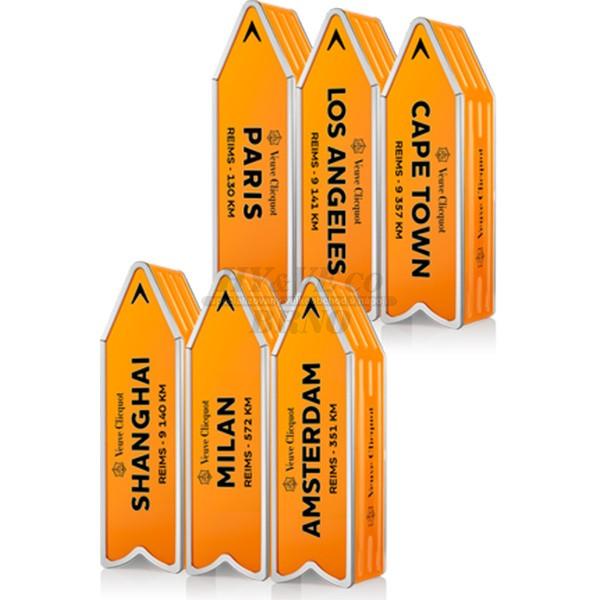 Limitovaná edice lahve Veuve Clicquot Ponsardin Brut (0,75l) v kovové krabičce ve tvaru šipky, které zároveň udržuje lahev ve správné teplotě po dobu asi 2 hodin.