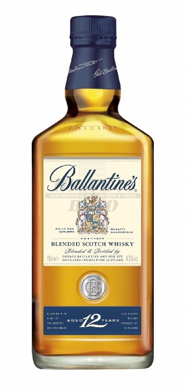Ballantines 12yo 0,7l 40% je jemná a komplexní. Tvoří ji směs více než 40 speciálně vybraných jednosladových a obilných druhů whisky, které zrály minimálně 12 let. Tato 12letá whisky je mezinárodně uznávaným standardem mezi víceletými skotskými whiskami.Má jasně zlatavou barvu. Vůně je medově sladká s komplexní rovnováhou dubových a vanilkových aroma. Chuť je krémová a medová, s květinovou příchutí a sladkostí dubu, v perfektní rovnováze.