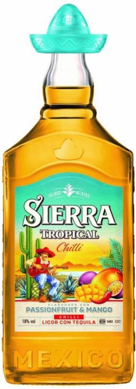Tequila Sierra Tropical Chilli - mango, passion fruit, chillli a Sierra Tequila Blanco - to vše dohromady tvoří nový likér na bázi Tequily. Svěží ovocná chuť s lehkým štiplavým chilli závěrem. Stvořená pro každou párty, kde zábava nekončí.
