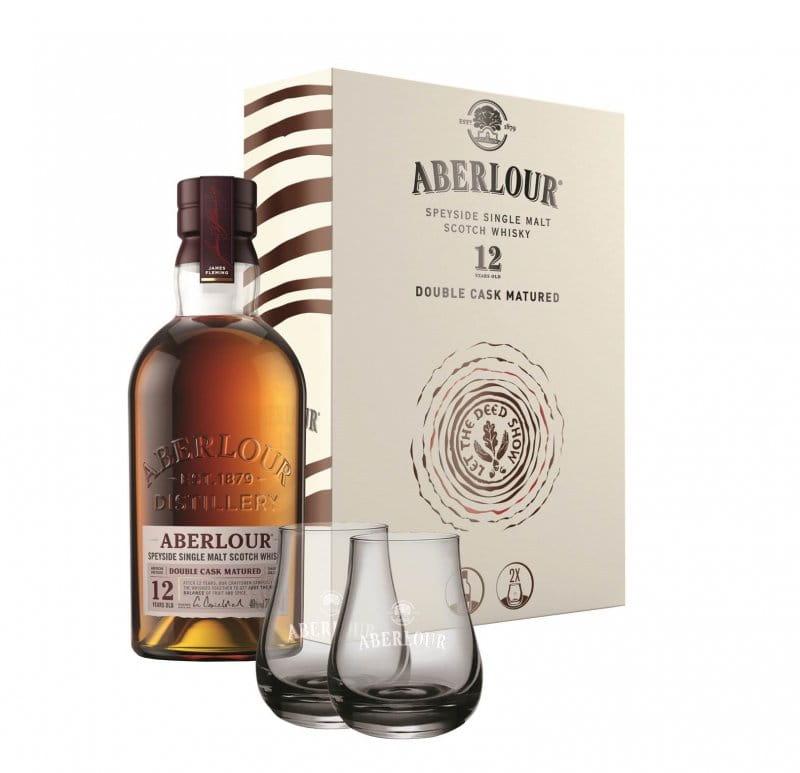 Sada obsahuje láhev 12letého Aberlour, perfektní Double Cask Matured single malt a dvě tulipánové sklenice, které dokonale uchovávají aroma whisky a umožňují vychutnat si její plnou chuť.